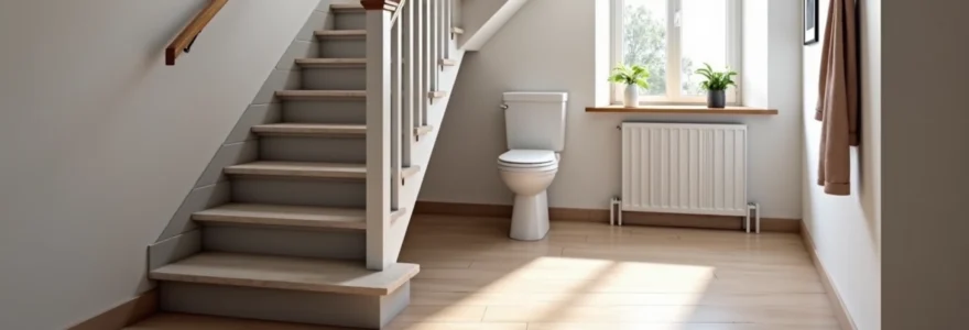 L’éclairage de l’escalier mérite une attention particulière avec un éclairement minimal de 150 lux selon les recommandations ergonomiques. Les appliques murales à détection de mouvement assurent un éclairage automatique sécurisant les déplacements nocturnes tout en préservant l’économie d’énergie.